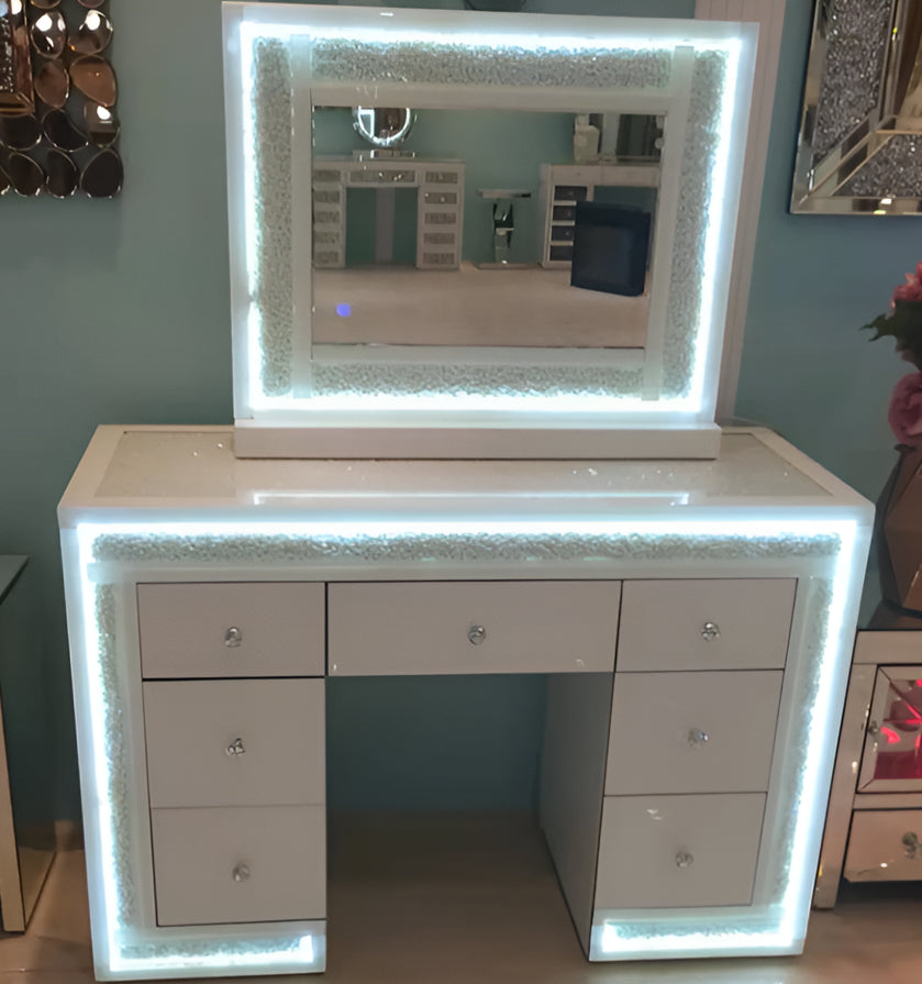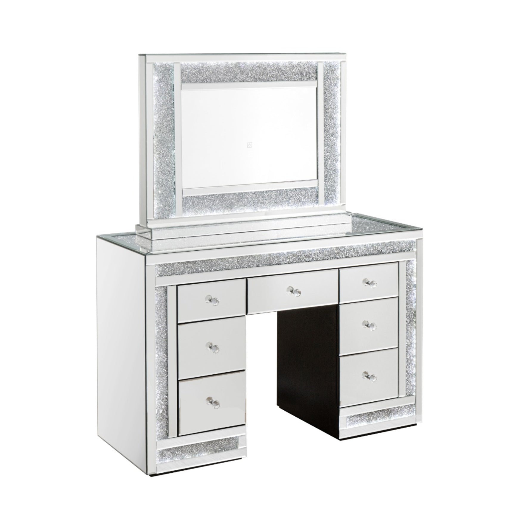 - Ruim Blad: Het ruime tafelblad biedt voldoende ruimte voor al jouw cosmetica, accessoires en spiegeltjes.