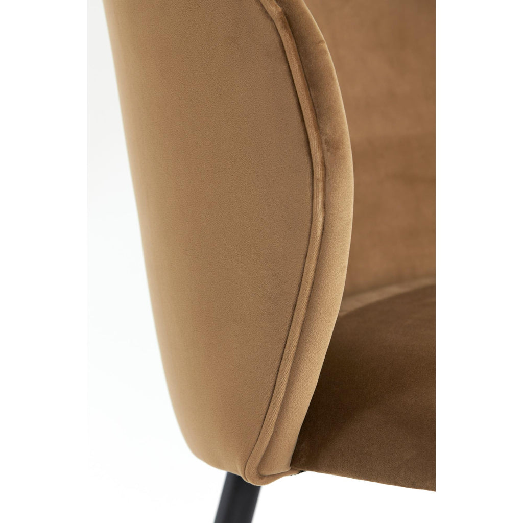 Set van twee eetkamerstoelen met een bruine velvet stof en zwart metalen onderstel