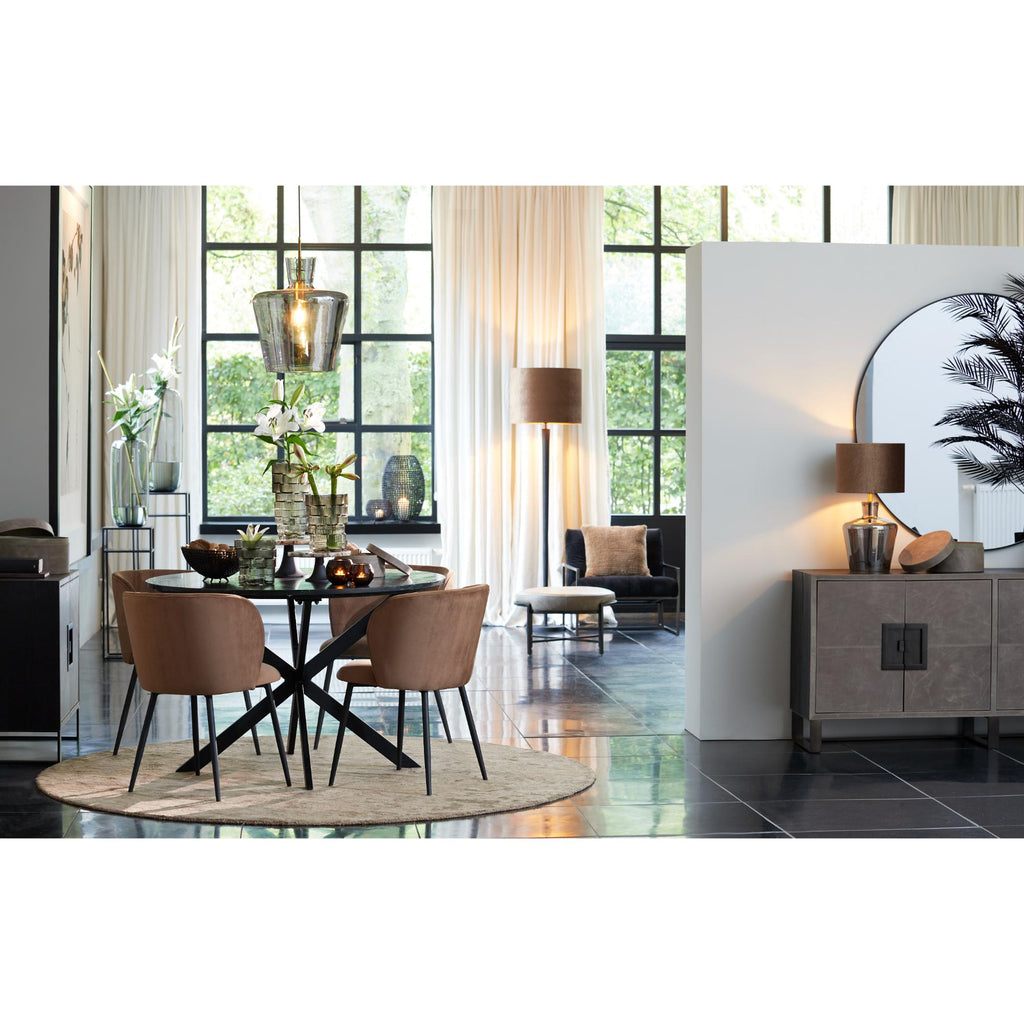 Deze elegante eetkamerstoel Elyna combineert een verfijnd design met comfort. De stoel heeft ranke mat zwarte poten die een luchtige en moderne uitstraling geven. Deze eettafelstoel past perfect in een hedendaags interieur. De ronde zitting van deze stoel biedt niet alleen stijl, maar ook het nodige comfort, waardoor lange diners een plezier worden met deze eetkamerstoelen. Of je nu een formele of een gezellige eetruimte wilt creëren, deze eetkamerstoel is een veelzijdige keuze die zich moeiteloos aanpast aan verschillende stijlen.