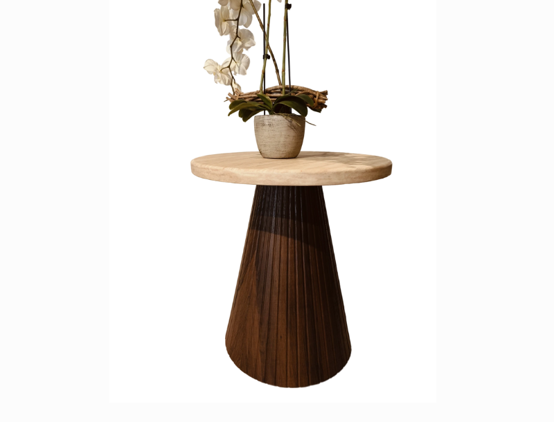 De bovenkant van de tafel is gemaakt van Flintstone faux marmer, wat zorgt voor een luxe uitstraling zonder in te boeten op functionaliteit. Dit hoogwaardige materiaal biedt niet alleen een esthetische meerwaarde, maar is ook praktisch in gebruik; het is eenvoudig schoon te maken en onderhoudsvriendelijk. De faux marmer afwerking maakt de tafel ook duurzaam en bestand tegen dagelijkse slijtage.