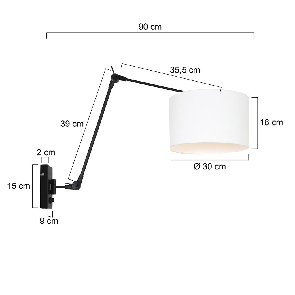 Wandlamp uit de Prestige Chic serie, vervaardigd uit geborsteld staal met zwarte kleurtoon. Deze wandlamp heeft een lange zwenkbare uitklap arm waardoor u daar licht kunt krijgen waar u dit wil hebben. De reikwijdte van de arm is 88,5 centimeter (zonder kap). De dimmer is verwerkt op de wandplaat. De lampenkap in wit linnen heeft een doorsnede van 30 centimeter en een hoogte van 18 centimeter, voorzien van een boven support. Bestel de 8120ZW wandlamp online met de service en garantie van een servicepunt bij u in de buurt. Wandlamp 7396ZW met kap K7396Q = 8120ZW
