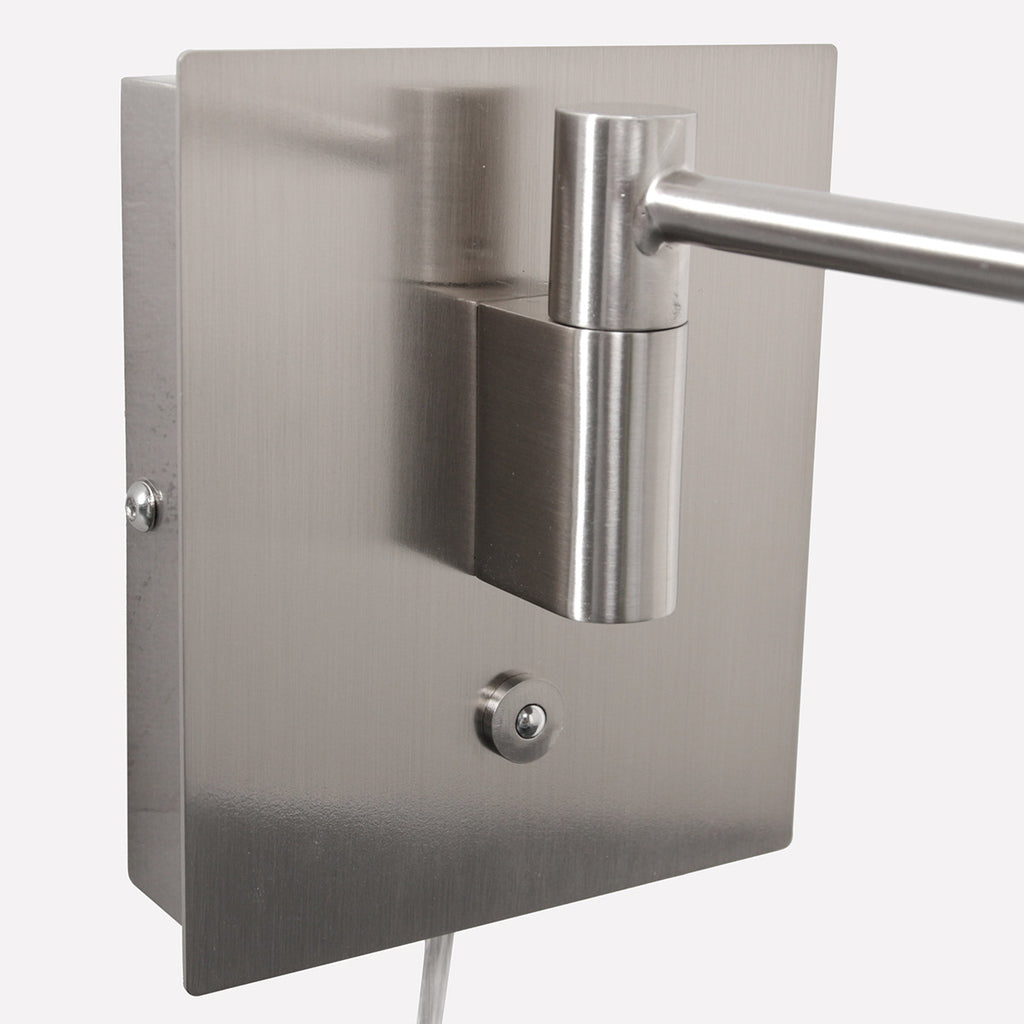 Het design van de Retina Wandlamp is een kunstwerk op zich. Het staalkleurige oppervlak, verfraaid met een elegante schuring, geeft de lamp een tijdloze uitstraling die naadloos in elk interieur past.
