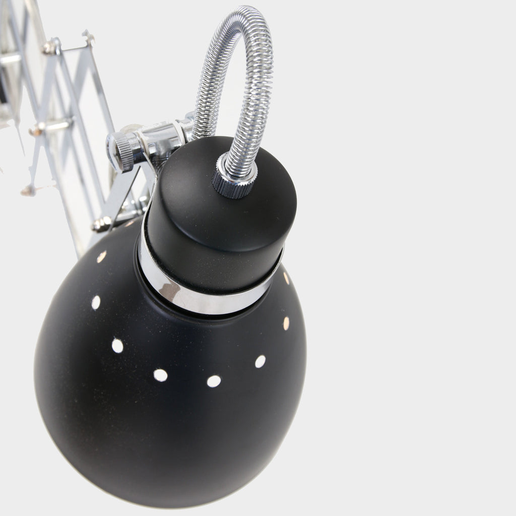 Een industriële zwarte stalen wandlamp met draaidimmer verwerkt op de wandplaat. Deze wandlamp is voorzien van een E27 fitting voor maximaal 40watt Doordat de arm scharniert en de reflector kantelbaar is, kunt u deze zo richten dat u precies daar licht krijgt waar dit gewenst is. Dit armatuur is voorzien van een snoer maar kan ook rechtstreeks op de netspanning (centraaldoos) aangesloten worden. Dankzij het schaarmechanisme is de wandlamp verstelbaar van 34 cm tot 90 cm van de muur. Meerdere lampen in deze stijl leverbaar (Spring). Bestel deze wandlamp nu online met de service en garantie van een servicepunt bij u in de buurt. 6290ZW Wandlamp