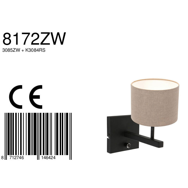 Wandlamp Nouveau 1472ZW met zwart gouden kapje en leeslampje van 3 Watt,Wandlamp Noor 1562ZW Zwart met leeslampje,Wandlamp Upround 3654ZW Zwart met draadloze telefoonlader,Spot - Wandlamp Bambus 3665ZW Zwart met houten kapje,Wandlamp Stang 3702ZW Zwart + leeslamp 3W,Zwarte wandlamp Stang 3709ZW met draai schakelaar en naturel zwart bamboe kap |