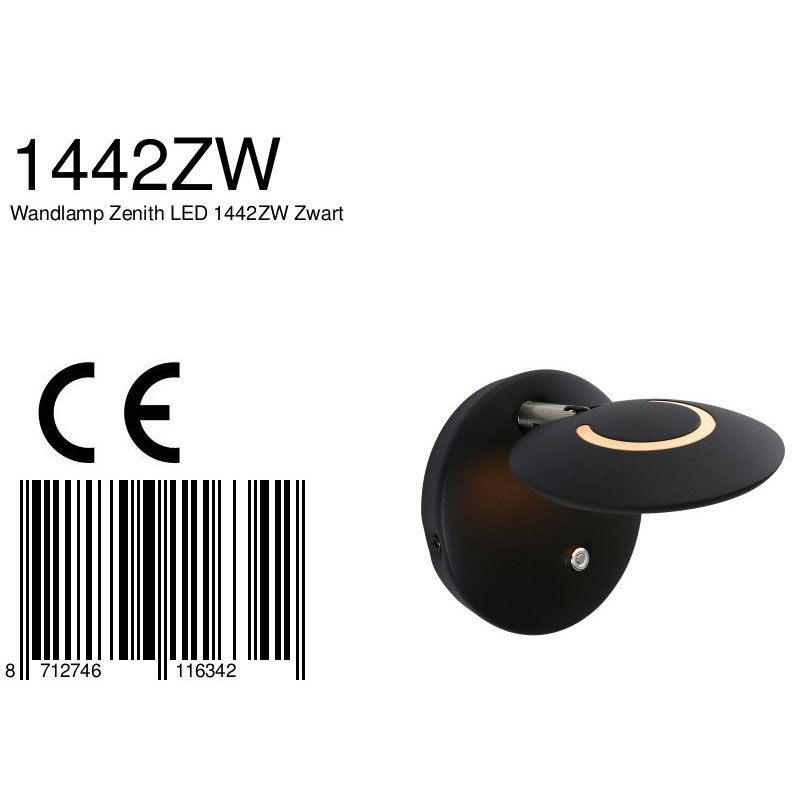Zwarte wandlamp uit de Zenith serie. De wandlamp is voorzien van een