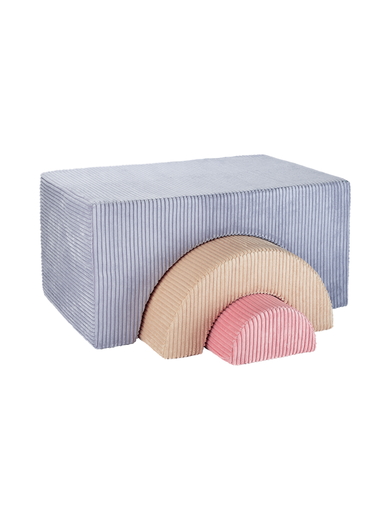 Wigiwama's Rainbow playset set features three different-shaped modules that can be used together or separately, sparking the imagination of your little ones. Whether they want a cozy chair, a playful table, a comfy pouf, or a secret hut, this versatile set has got them covered! Outer shell: OEKO-TEX® and GRS® certified wide wale corduroy produced from recycled PET bottles, 100% polyester filling: ISO-certified polyurethane foam Size: Length 75 cm / Width 49 cm / Height 37 cm Features a zip opening so the cover could be removed and washed according to the washing instructions Made locally in Latvia with care for our planet