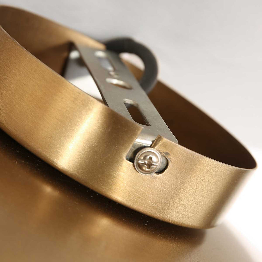 Het unieke ontwerp kenmerkt zich door een subtiel metalen plaatje met gaatjes, waardoor het licht op een prachtige manier wordt verspreid. Deze lamp, in een bronzen tint met een vleugje goud, straalt warmte en luxe uit, en heeft een oorsprong die teruggaat naar het prachtige India.