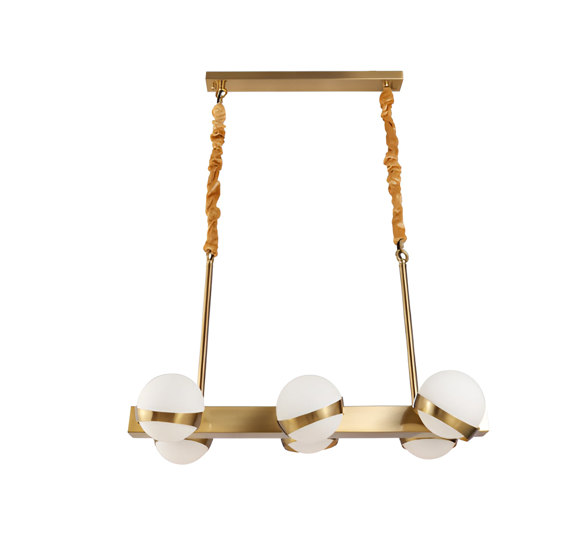 Design: Een moderne hanglamp met een schitterende combinatie van gouden elementen en stralende witte bollen. De bollen zijn ontworpen om een warme en uitnodigende sfeer te creëren, perfect voor zowel woonkamers, eetkamers als keukens.