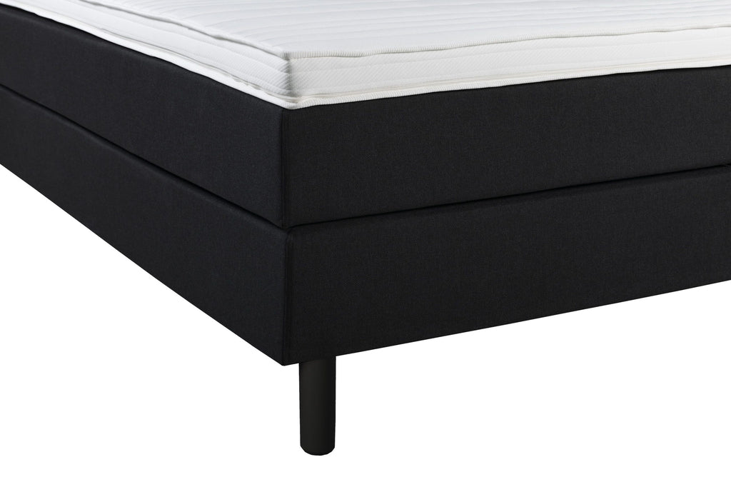 De hogere zwarte pootjes van 12 cm geven de boxspringset een moderne uitstraling.