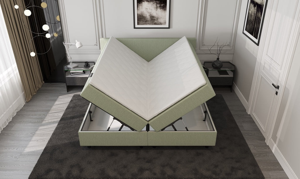 De boxen hebben een hoogte van ca. 30 cm en bestaan volledig uit opslagruimte. Normaal is dit een loze ruimte, maar deze boxspring is multifunctioneel! Het openen en sluiten van de opbergruimte gaat erg makkelijk; door aan de stevige lus te trekken gaan de pocketveer matrassen zijwaarts omhoog, alsof hij zijn vleugels uitslaat.