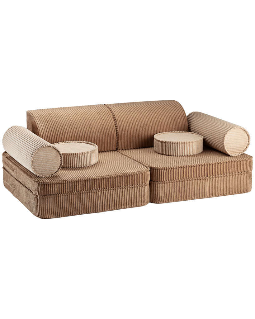 Meet Settee - our newest addition to the Wigiwama family! Get ready for a dynamic companion that will become your little one's ultimate best buddy, accompanying them through each and every day. Highly versatile, specially designed to fit into all types of family homes Settee will create a safe environment for play, rest, nap, or whatever the little Settee owner is up to. The Wigiwama Settee comes in 9 parts - two seat cushions, one big seat cushion, two triangular cushions as backrests, two roll cushions as armrests, and two round cushions - providing a perfect combo with limitless potential for imaginative play and relaxation. The settee is not just a piece of furniture - it's an invitation to a world of joy and discovery! Outer shell: OEKO-TEX® and GRS® certified wide wale corduroy produced from recycled PET bottles, 100% polyester filling: ISO-certified polyurethane foam. The material's high density enhances comfort and quality Size: Length 136 cm / Width 78 cm / Height 46 cm Features a zip opening so the cover could be removed and washed according to the washing instructions Made locally in Latvia with care for our planet