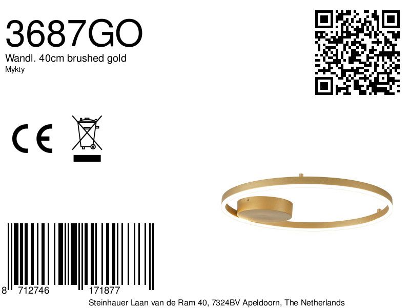 Bestel nu de Gouden Wand- en Plafondlamp Mykty 3687GO online en geef jouw ruimte een vleugje tijdloze elegantie met deze veelzijdige en stijlvolle verlichting. Profiteer van de betrouwbare service en garantie van ons servicepunt bij jou in de buurt.